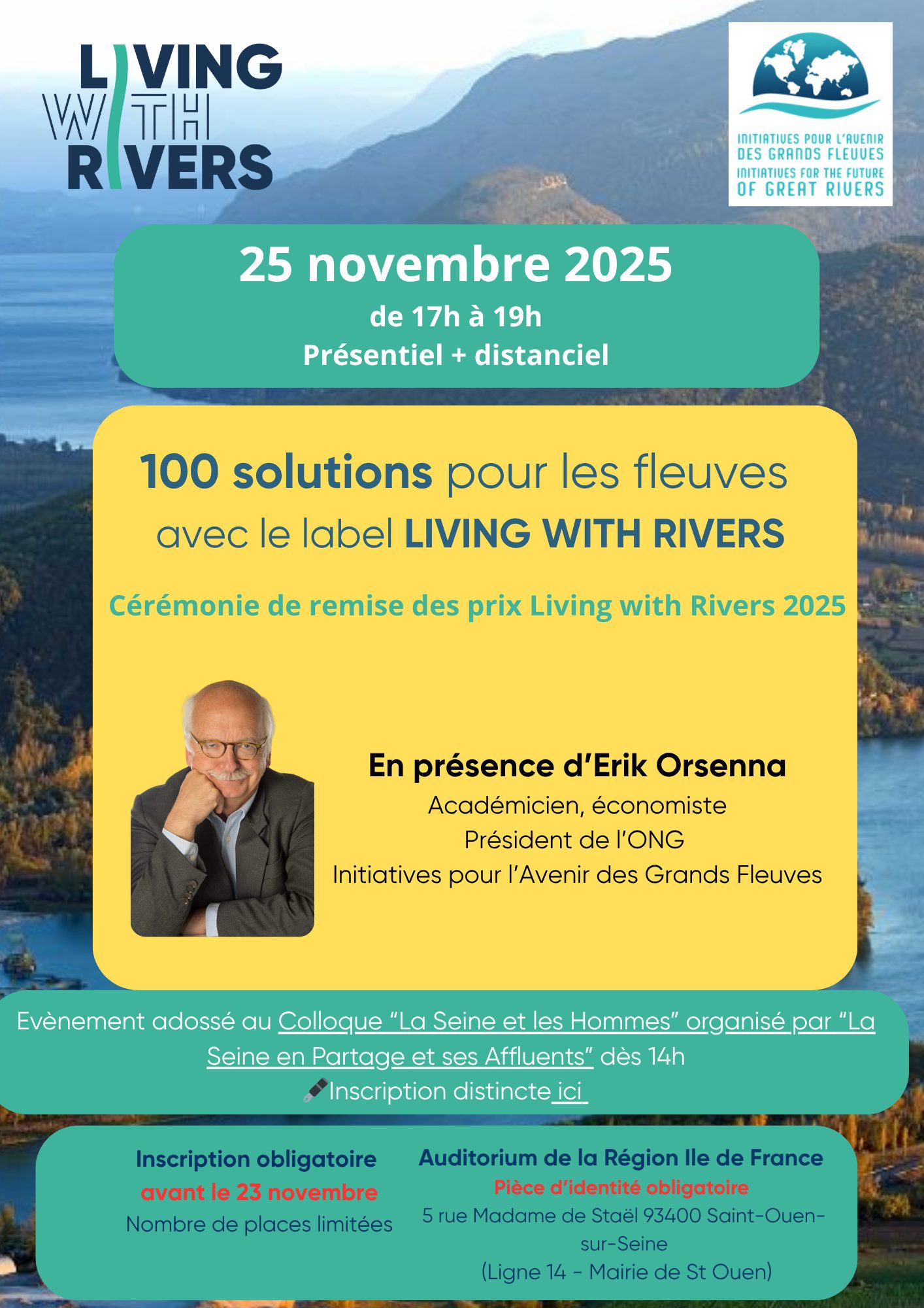Rejoignez nous pour une conférence inspirante sur l’avenir des fleuves et des communautés qui en dépendent, suivie de la remise des prix aux lauréats du Label Living with Rivers 2025 !