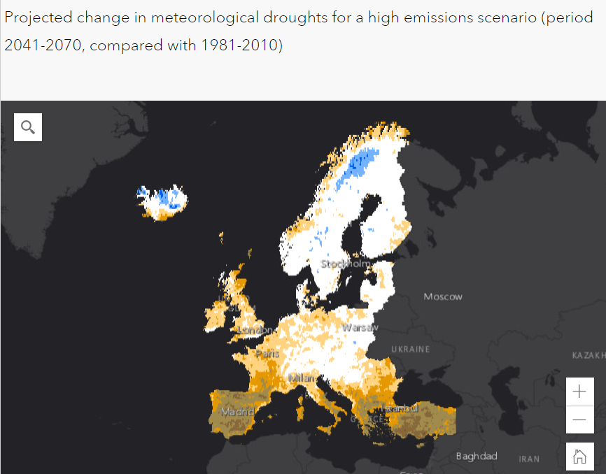 Map of Europe shaken by climate change at the end of the 21st century