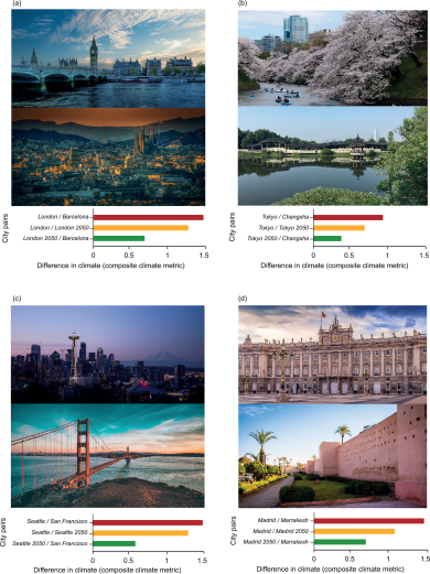 Les chercheurs ont étudié le climat de 520 grandes villes du monde, selon 19 variables dont la température, les précipitations et différentes moyennes. Leurs projections sont établies sur un modèle volontairement optimiste, qui suppose que les émissions de dioxyde de carbone se stabiliseront d’ici le milieu du siècle, de façon à limiter la hausse de la température moyenne du globe à 1,4°C par rapport à la période pré-industrielle.