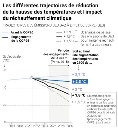 C’est la trajectoire du réchauffement planétaire à l’issue de la COP 26.