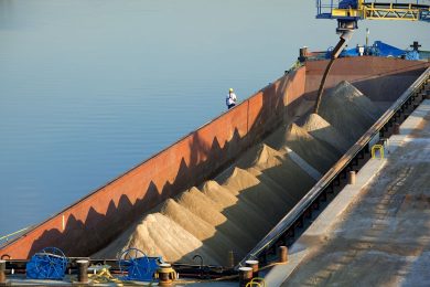 Actualité Toutes les actualités Chargement d'une barge, site industriel et portuaire de Salaise Sablons, Isere (38), France 27 août 2019