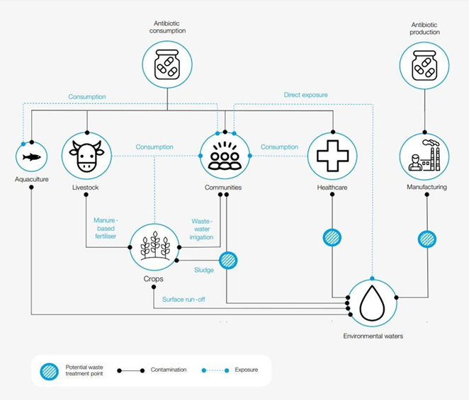 La résistance aux antibiotiques est devenue l’une des dix grandes menaces mondiales pour la santé humaine, selon l’OMS. Les infections bactériennes résistantes aux antibiotiques auraient tué près de 5 millions de personnes en 2019. Dans son document « Antimicrobial Resistance and Water : The Risks and Costs for Economies and Societies », le Forum économique mondial précise que jusqu’à 10 millions de décès par an d’ici à 2050 pourraient être causés par cette résistance aux antibiotiques.
