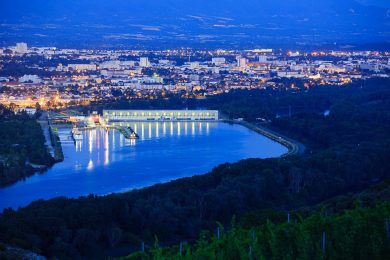 Sur le canton de Genève je fais tourner trois ouvrages hydroélectriques, qui sont exploités par les Services industriels de Genève (SIG). Le premier d’entre eux, à la sortie du Léman, est le barrage de Seujet. Sa production annuelle est plutôt faible, avec 25GWh. Il participe surtout à réguler le niveau des eaux du Léman et permet de moduler mon débit. Ainsi, le barrage du Verbois, situé en aval, peut adapter la production d’électricité et en fournir davantage en période de forte demande. Sa production annuelle est de 466 GWh. Enfin, le barrage franco-suisse de Chancy-Pougny produit pour sa part 250 GWh/an.