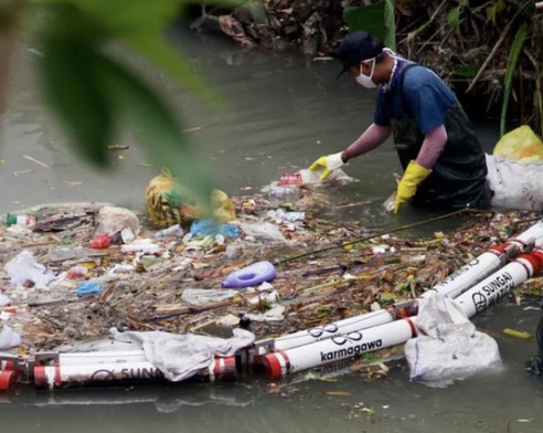 Installation de barrières à déchets pour empêcher la pollution plastique d'atteindre les rivières et les océans